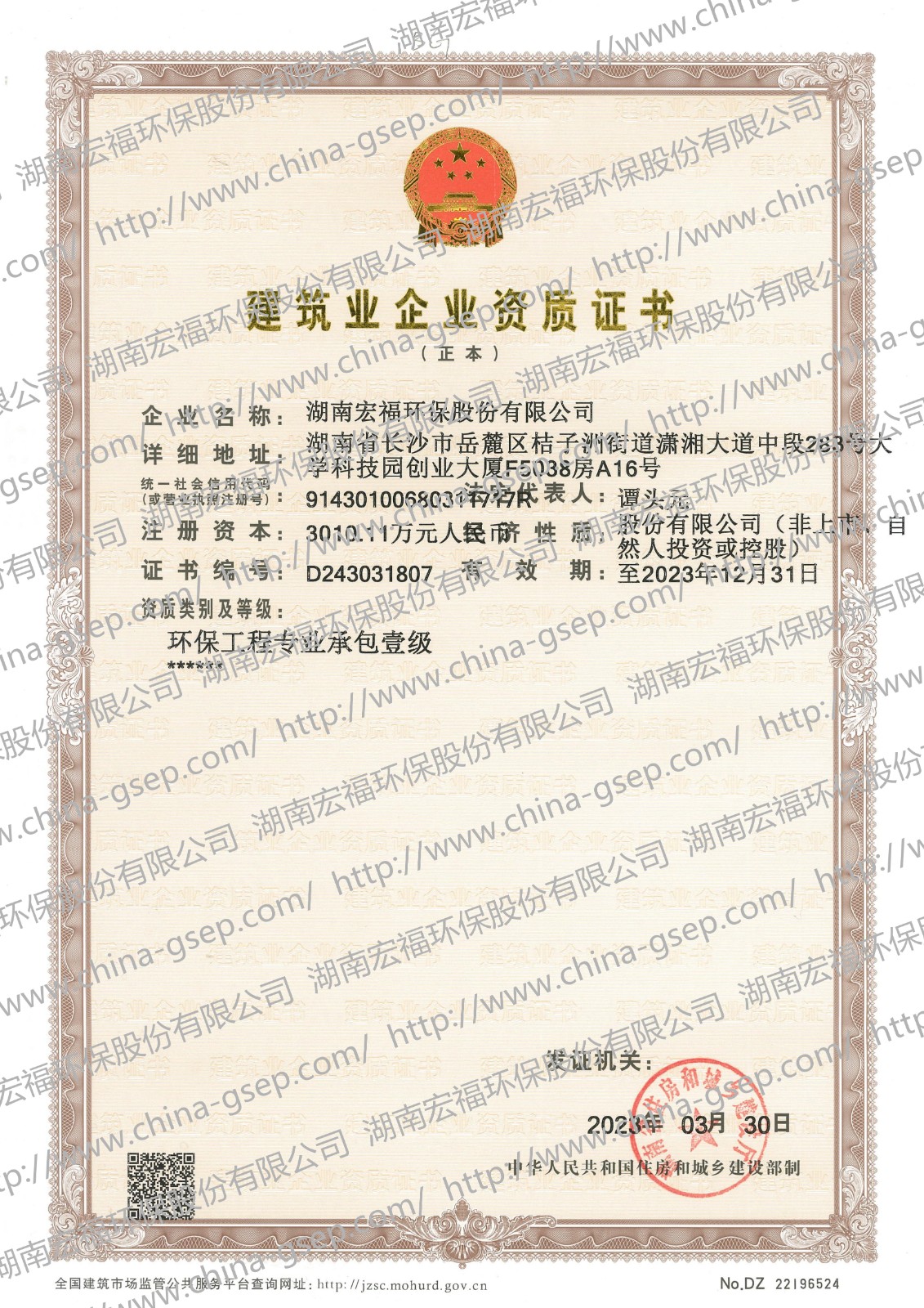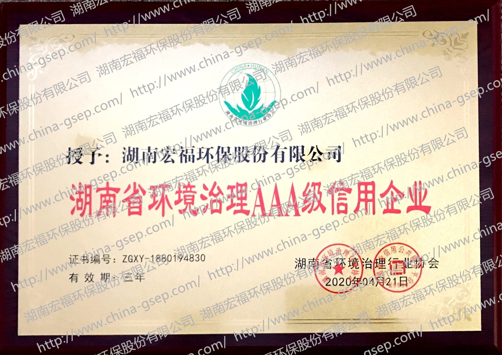 湖南省环境治理AAA级信用企业